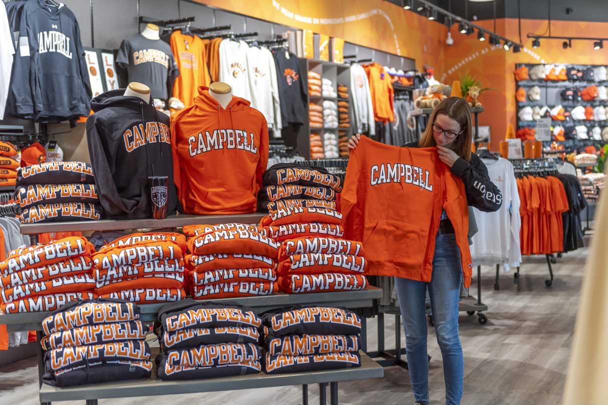 The Bazaar Campus Store has exclusive Fighting Camels apparel and collegiate memorabilia including sweatshirts, t-shirts, polo shirts, shorts, jerseys, hats, flags, backpacks, water bottles, and more. The Bazaar is located on the first floor of the Oscar N. Harris Student Union. For store hours and contact information, visit the Campus Store website.