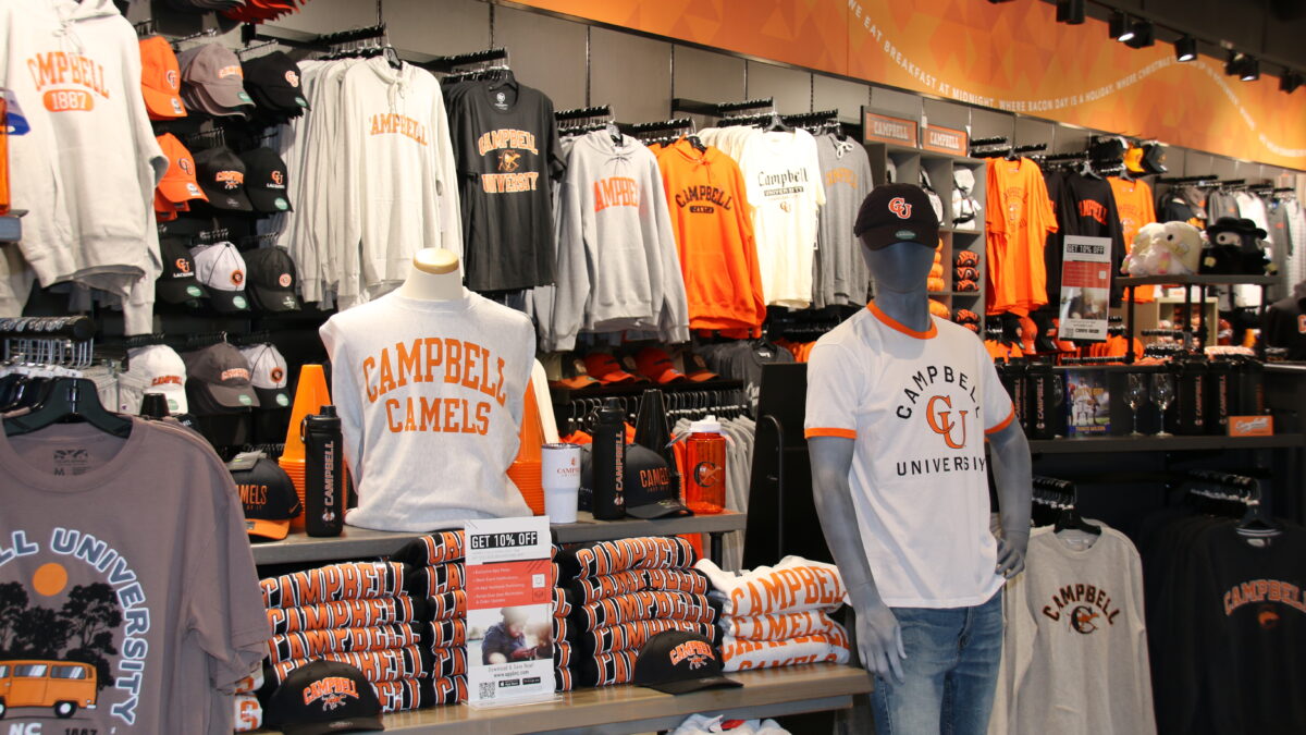 The Bazaar Spirit Shop has exclusive Fighting Camels apparel and collegiate memorabilia including sweatshirts, t-shirts, polo shirts, jackets, jerseys, hats, flags, backpacks, water bottles, and more. School supplies and scantrons are also purchased here. The Bazaar is located on the first floor of the Oscar N. Harris Student Union.
