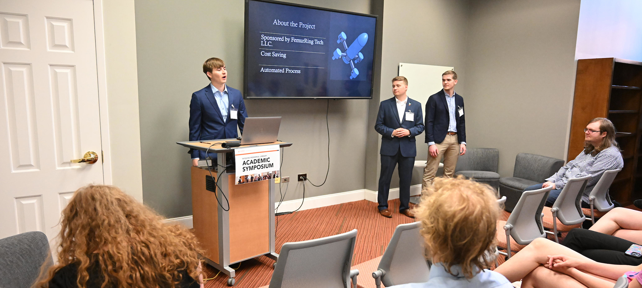 And engineering majors Carson Daly, Julian Brickhouse and Harper Beck introduced their research and senior project to create a drove to video record skydivers autonomously — their work with an outside private business looks to revolutionize the skydiving industry to automating photography and videography that currently requires another diver and additional costs.