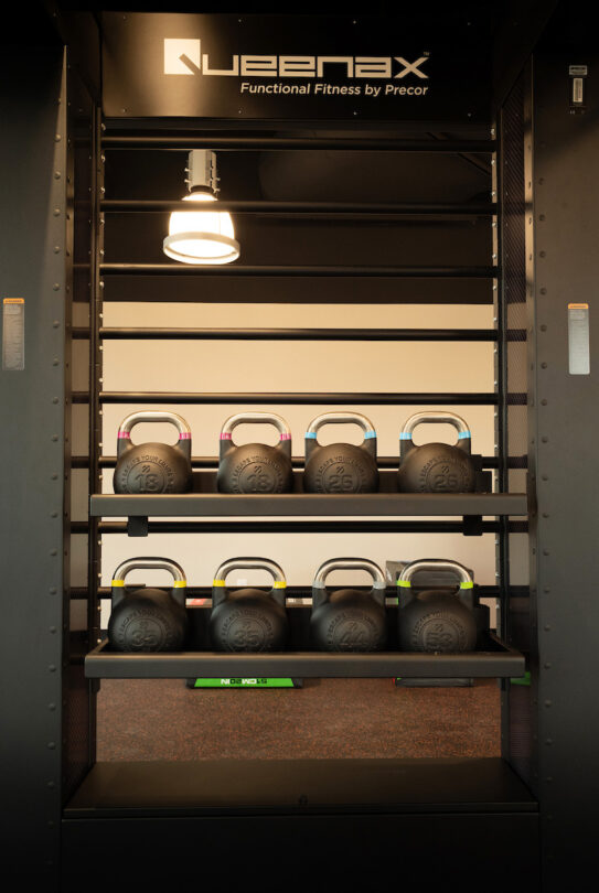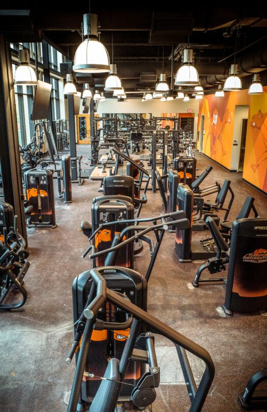 Managed by Campus Recreation, the state-of-the-art fitness and wellness center includes spaces for workout and group fitness as well as personal training. The facility includes lockers, two single-user bathrooms with a shower in each, state-of-the-art cardio equipment, free weights, and strength training equipment. Both stories of the fitness center feature a wall of glass windows for natural light and campus views.