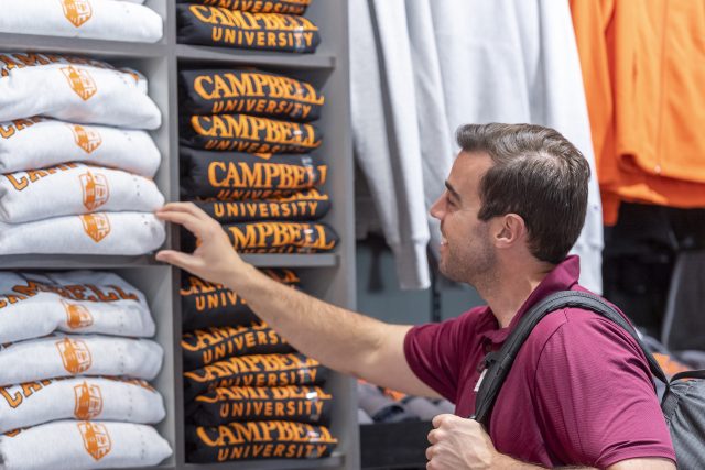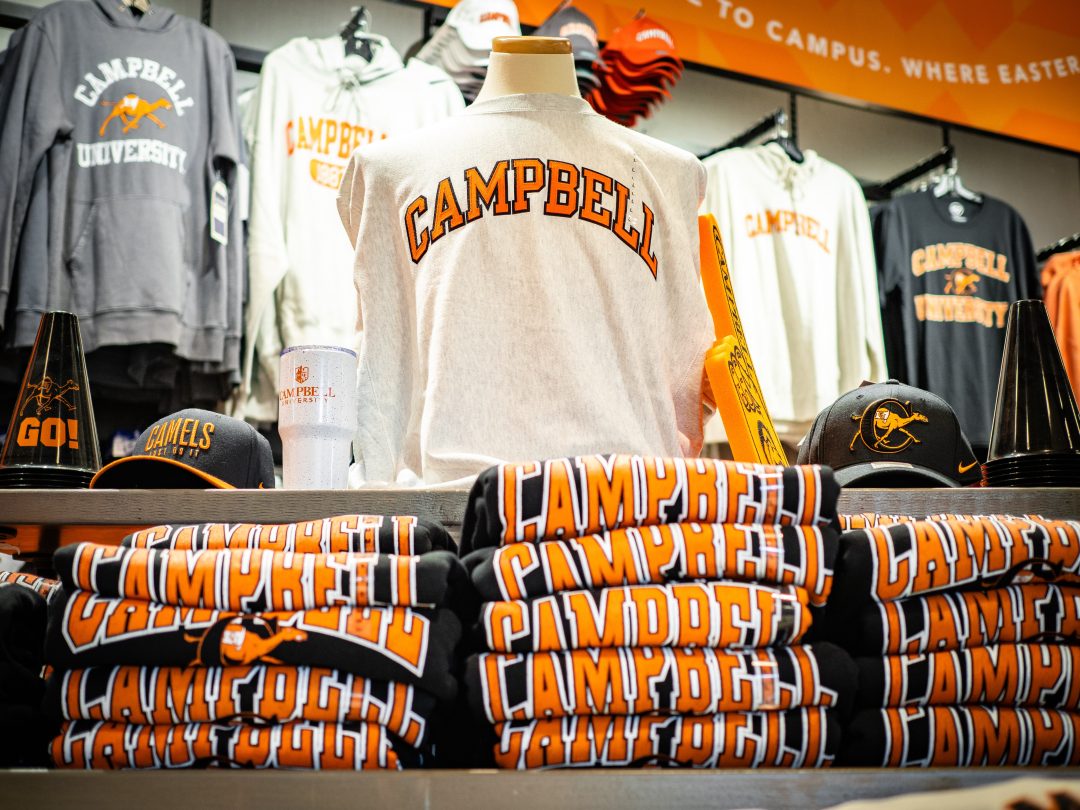 The Bazaar Campus Store has exclusive Fighting Camels apparel and collegiate memorabilia including sweatshirts, t-shirts, polo shirts, shorts, jerseys, hats, flags, backpacks, water bottles, and more. The Bazaar is located on the first floor of the Oscar N. Harris Student Union. For store hours and contact information, visit the Campus Store website.