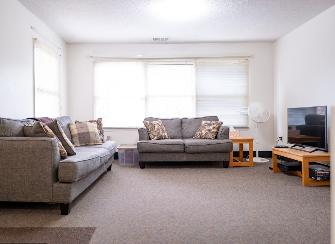 - Shared living area with a couch, chair, and coffee table.