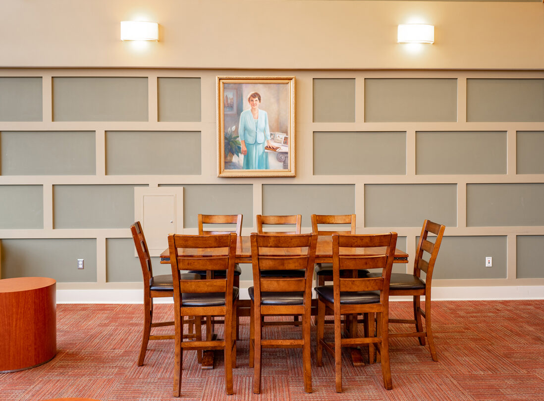 Pat Barker Hall, situated on the north campus, houses 146 students. The three-story brick structure consists of 4-person suites, with each room housing 2 students and a shared bathroom. Each floor contains shared lounges and study areas with great views to the surrounding campus. The ground floor contains a gallery entrance and a large commons area.