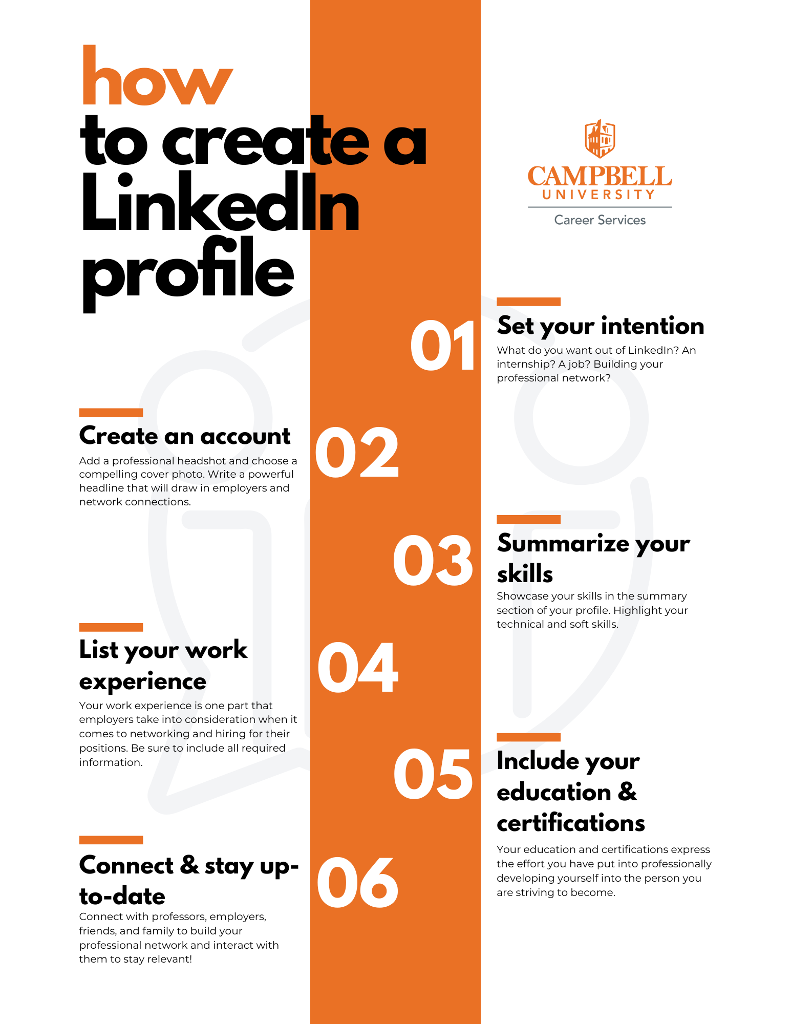 industry and workplace. - Refer to our LinkedIn Checklist when creating and updating your LinkedIn profile.