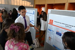 The pair were part of a large group of students, faculty and staff who gathered April 2 for the 14th Annual Interprofessional Education Health Sciences Research Symposium.