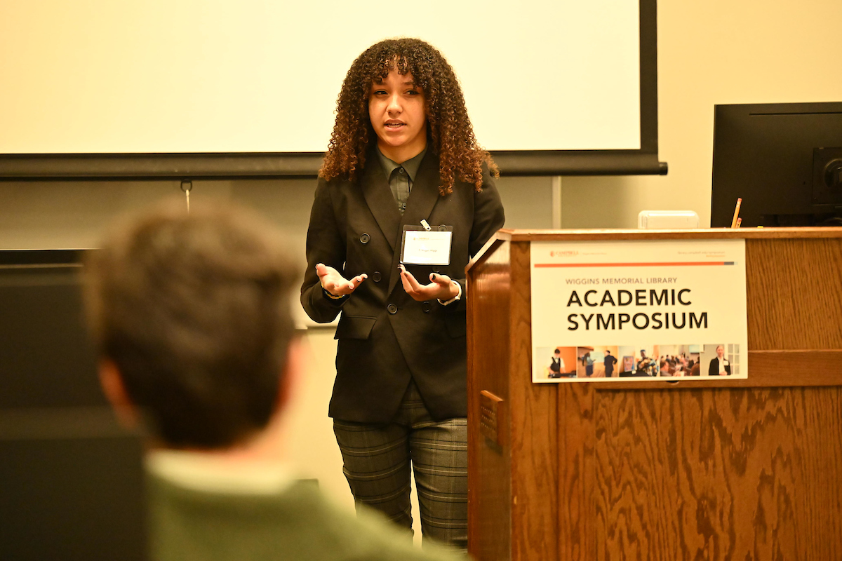 The hoped-for outcome of every Academic Symposium is a greater appreciation for the learning process. Hannah Byer, a freshman Honors Program student, presented on “Education and Transformation,” looking at prison education programs like Campbell’s Second Chance Initiative and the impact they have on recidivism rates.